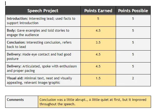 Once you are happy with the rubric you've created in Google Forms, you'll need to create a corresponding template in Google Docs. You can design the rubric to look however you want. Below, you'll see a sample of one of mine.